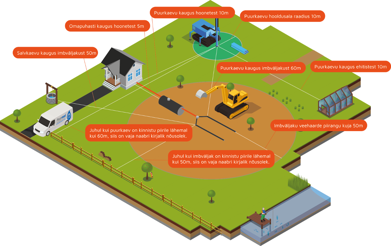 Kogumismahuti ei tohi paikneda puurkaevu sanitaarkaitsealas (10-200 m) ning puur- ja salvkaevu hooldusalas (10 m kaevust).