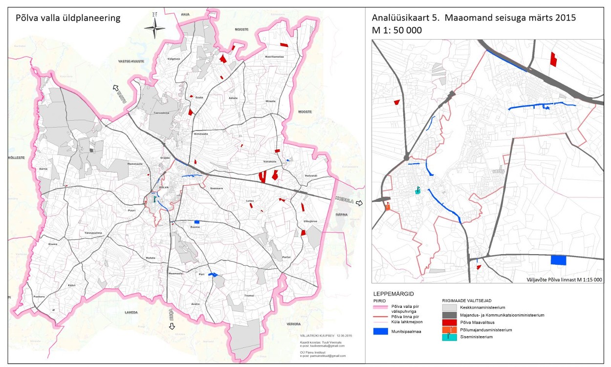 Olemasoleva olukorra analüüsiskeemid: olemasolev maakasutus, väärtused maastikus, looduskeskkond, planeeringud, maaomand
