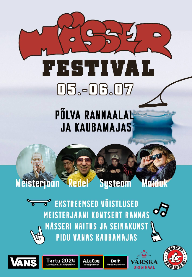 5.-6. juulil toimub Põlvas MÄSSERI Festival. Kahel päeval saab Põlva kesklinnas nautida mõnusat meeleolumuusikat ja näha rajusid trikke nii rula, veelaua ja ka mõne muu sõiduvahendiga. Festival...