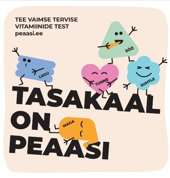 Üle-eestiline vaimse tervise vitamiinikuur toimub 17.02-23.03. Vitamiinikuuri jooksul saab täita testi, et välja selgitada, missugust vaimse tervise vitamiini kõige enam vaja on. Vaimse tervise vitamiinide testi saab teha siin: peaasi.ee/vaimse-tervise-vitamiinid/