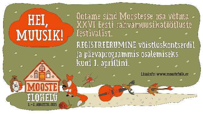 1.– 2. augustil toob Eesti rahvamuusikatöötluste festival Mooste Elohelü muusikuid ja muusikahuvilised Moostesse kokku – sest folk pand käümä ja osavõtusoove ootame just nüüd!