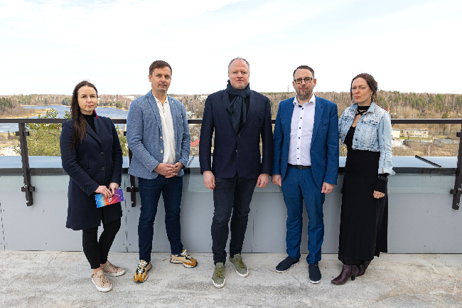 Fotol vasakult: Agrone infojuht Ebe Nõmme, Põlva Agro juht Silver Kask, Agrone OÜ juhatuse esimees Raul Jeets, Põlva vallavanem Martti Rõigas ja Põlva kultuurikeskuse juht Eerika Mark. Indrek Illuse foto
